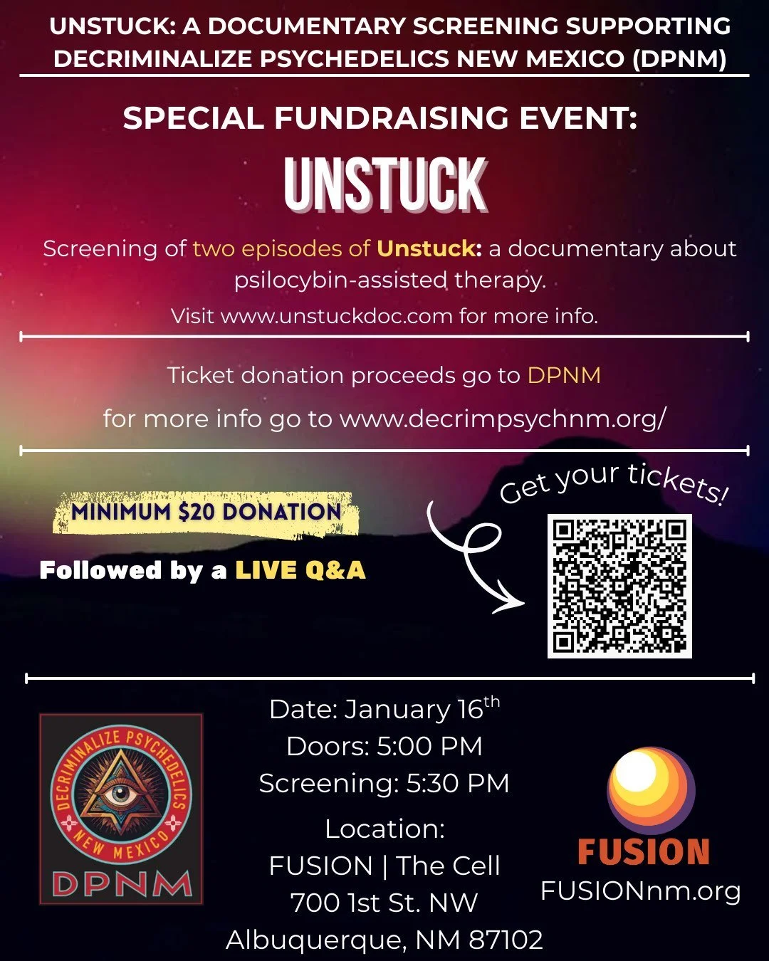 Back to All Events Unstuck Screening Friday, January 16, 2026 5:00 PM 9:00 PM 700 1st St NW Albuquerque, NM 87102 (map) Google Calendar ICS
